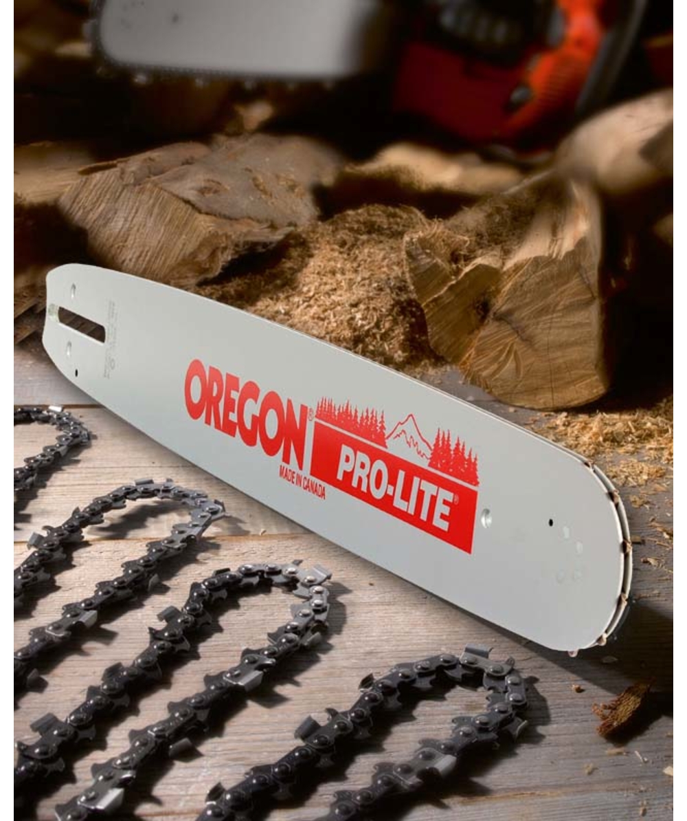 • Die Oregon Prolite Schiene ist leichter gegenüber Vollstahlschienen und dank einer Siliziumstahl-Legierung sehr stabil